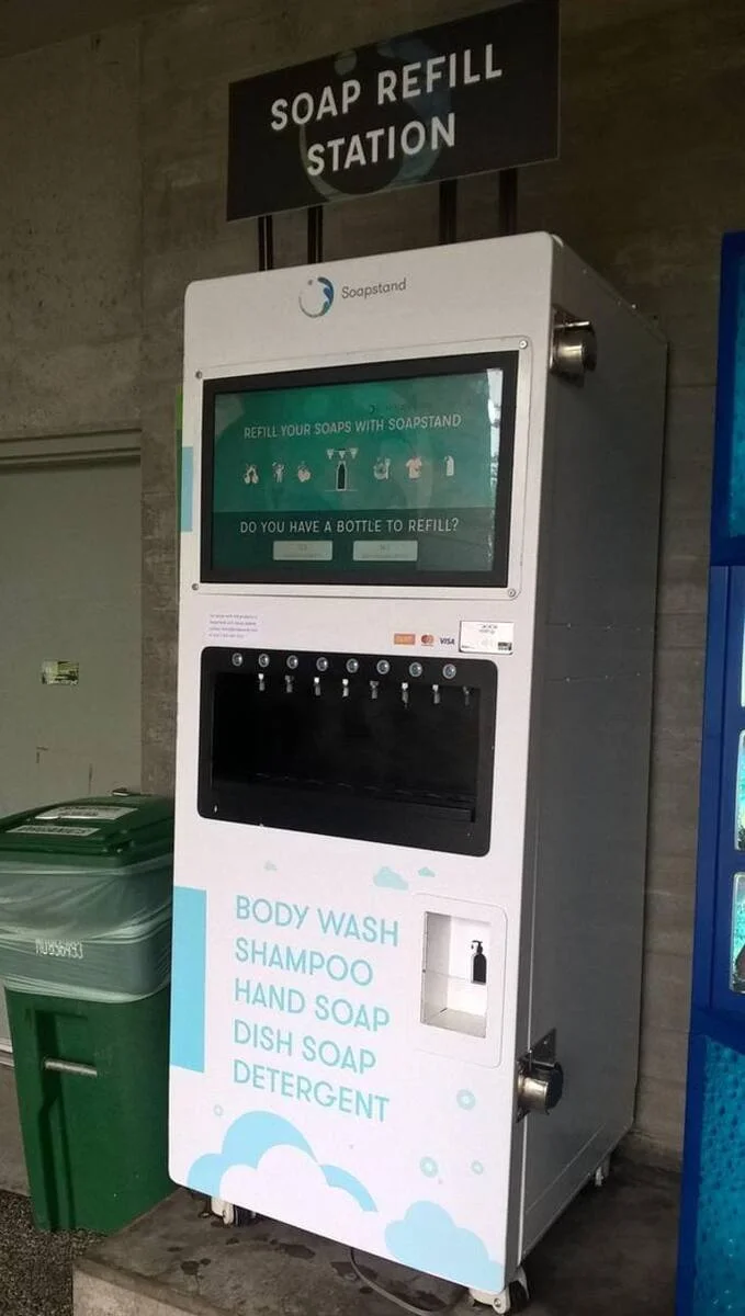 Чтобы не покупать лишних пластиковых флаконов, здесь можно набрать мыло и шампунь в свою тару