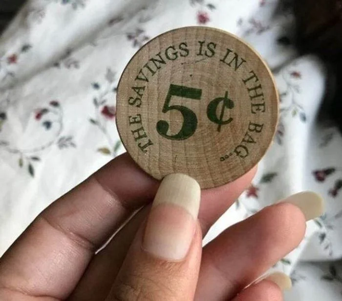 Магазин даёт деревянный купон на скидку всем, кто не берёт пластиковых пакетов