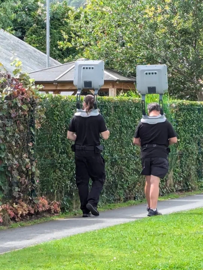 18. Мужчины с устройствами, закреплёнными плечах. Это сканирующее оборудование?