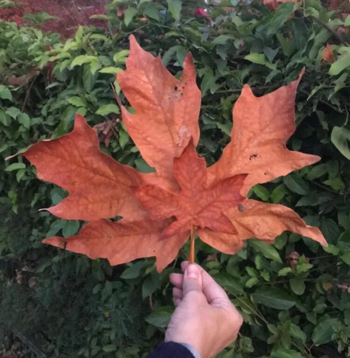 «Гигантский лист в сравнении с маленьким с того же дерева»