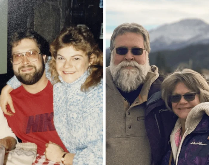 "Слева я с другом, который очень поддержал меня после развода. А справа мы уже пара и планируем пожениться. Я стала легче на 33 кг, а он на 18"