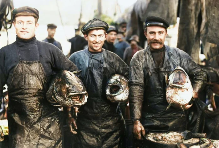 Портрет рыбаков с уловом на Лофотенских островах, 1910 год.