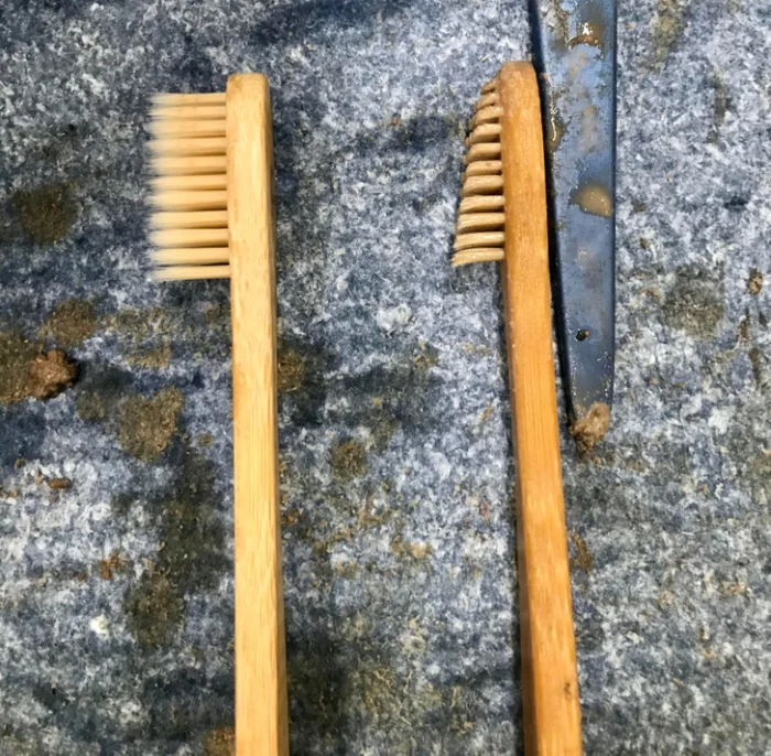 9. «Слева — новая щетка, а справа щетка, которой весь день очищали керамику с раскопок»