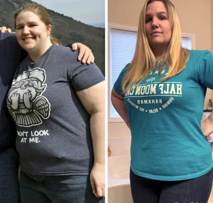 "Футболка на фото справа еще 3 года назад не налезала на меня. Сегодня я надела её впервые"