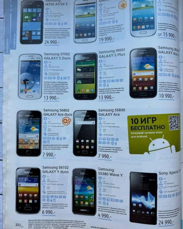 К нам в руки попал рекламный буклет 2013 года. В то время цены на электронику были совершенно иными, и покупка нового гаджета не вызывала такого стресса, как сейчас. Люди могли позволить себе обновить свои устройства, не задумываясь о бюджете. Понастальгируем вместе.