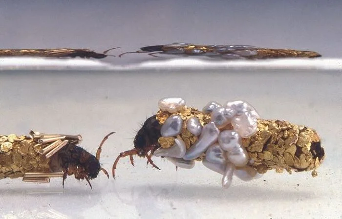 9. Личинки Trichoptera защищают свои развивающиеся тела, создавая оболочки из шелка и детрита, найденного на дне прудов