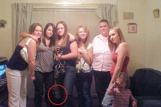 Эта фотография выглядит довольно обычной... Фотограф Мэтью Саммерс поначалу тоже не заметил ничего странного, но когда он увеличил масштаб, то увидел маленькую девочку между ног девушек слева...