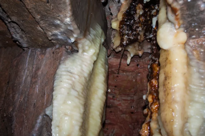 Обратите внимание на солевые отложения, оставленные водой за десятилетия!