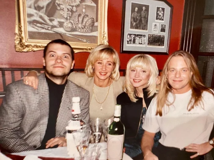 19. Федор Бондарчук, Оксана Пушкина и тогда ещё супруги Кристина Орбакайте и Владимир Пресняков в ресторане, 1991 год