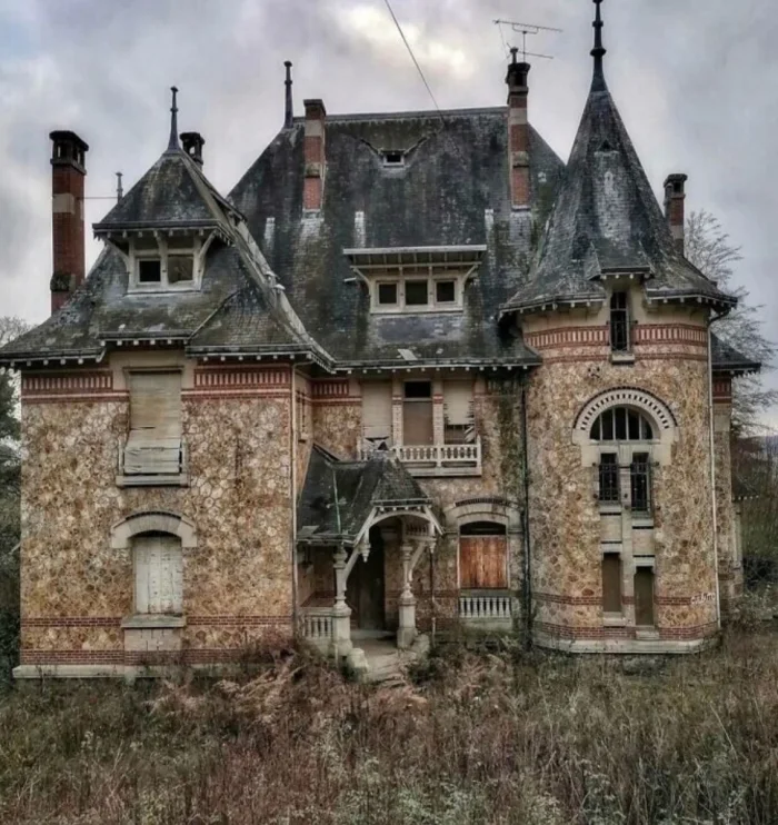 Заброшенный дом, где крыльцо теперь напоминает пасть с клыками