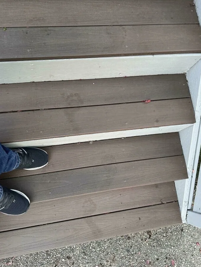 Следы, оставленные на крыльце рано утром. Остались от кого-то из-за росы