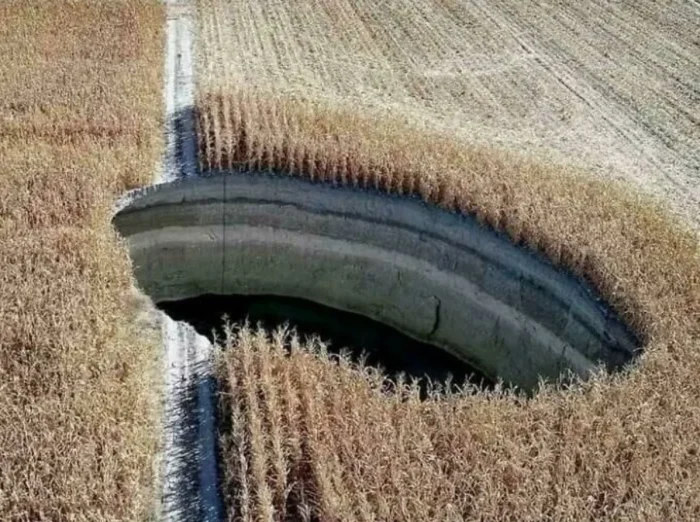 Воронка глубиной до 15 метров и диаметром несколько десятков метров, обнаруженная в Турции после землетрясения в феврале 2023 года