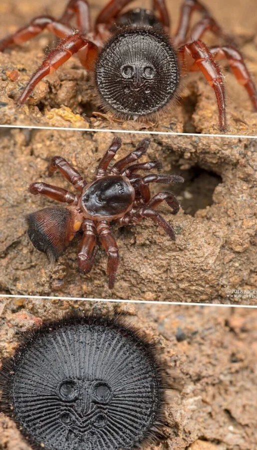 Пробковый паук-люк роет нору, залезает в нее и затыкает вход своим брюшком, как пробкой
