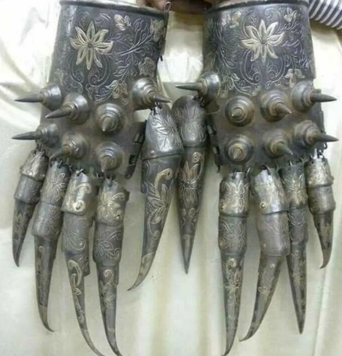 Перчатки от доспехов, известные как «медвежья лапа». Их носили воины исламской, индийской, персидской и пакистанской цивилизаций