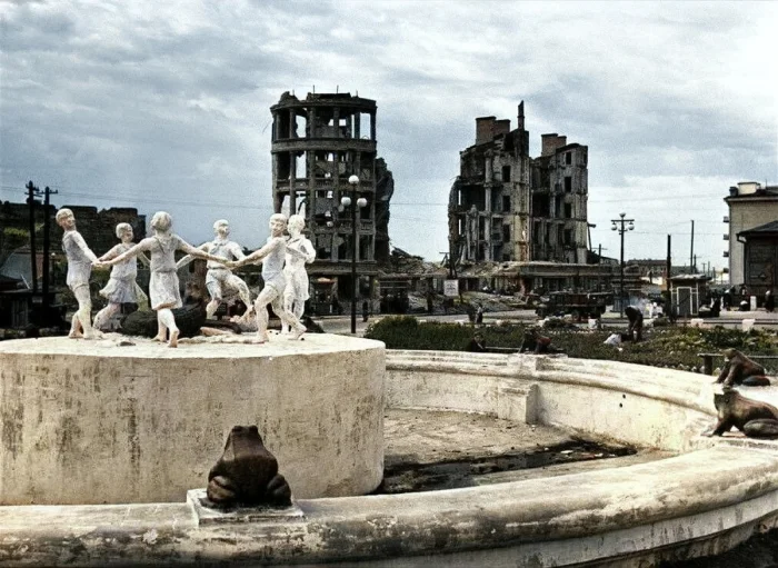Этот фонтан стал символом военной истории Сталинграда и приобрел мировую известность благодаря фотографиям Э. Н. Евзерихина, которые запечатлели резкий контраст между беззаботными детьми, играющими у фонтана, и разрушенной картиной города после воздушного налета немецкой авиации 23 августа 1942 года, когда Сталинград переживал одну из самых трагических страниц своей истории.