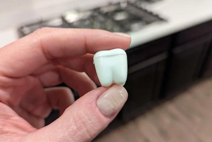 «У моего сына в первом классе на уроке выпал молочный зуб. Учитель положил его в эту маленькую коробочку и отдал домой»
