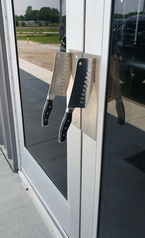 По форме ручек можно догадаться, что это вход в мясной магазин