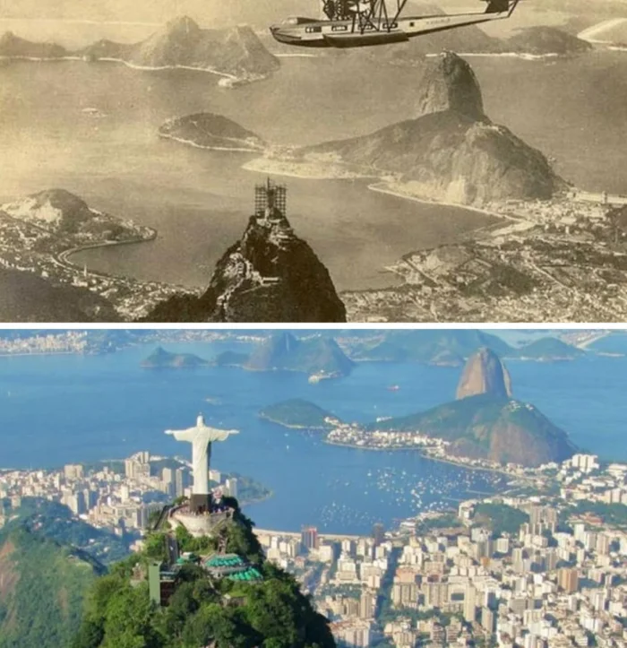 Бразильская статуя Христа-Искупителя. В 1930 году вокруг неё были установлены строительные леса.