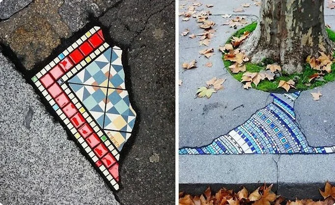 5. Французский художник украшает выбоины на тротуарах потрясающей мозаикой
