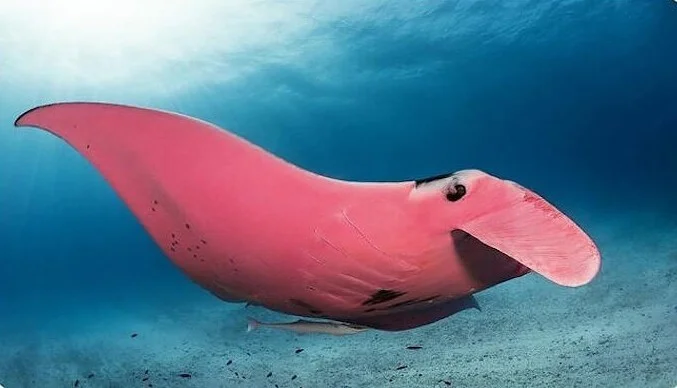 10. Фотограф запечатлел удивительные моменты с единственной известной розовой манты у Большого Барьерного рифа