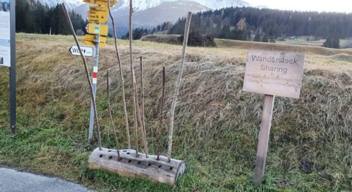 На старте туристической тропы предоставлены палки для удобства