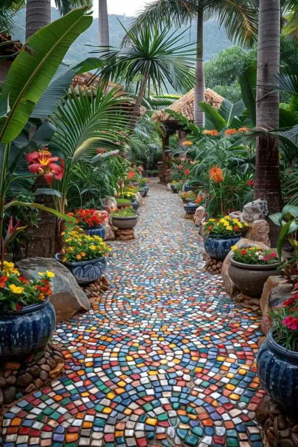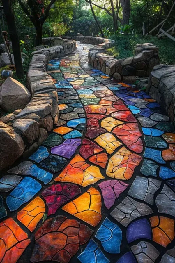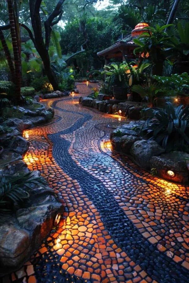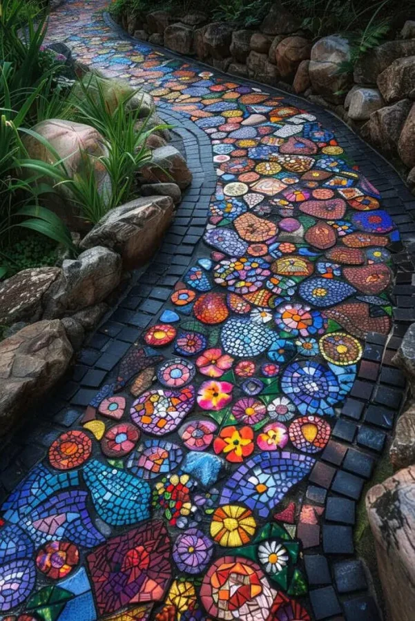 Эстетичный ландшафтный дизайн загородного или садового пространства всегда приносит радость. Применяя творческий подход, можно преобразовать стандартные садовые дорожки в живописные маршруты. Яркие мозаики, цветочные орнаменты и освещение сделают сад привлекательным местом, где прогулка станет настоящим удовольствием. Посмотрите!