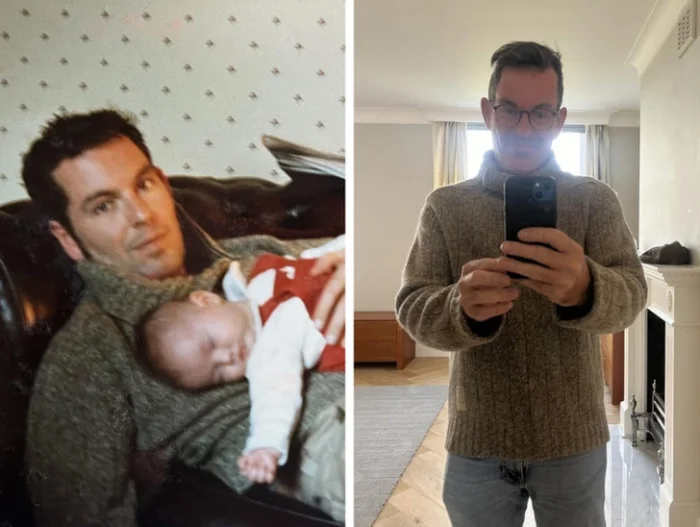 "Малышке с первой фотки уже исполнился 21 год, а я ношу все тот же свитер. Он, похоже, вообще не стареет, в отличие от меня"