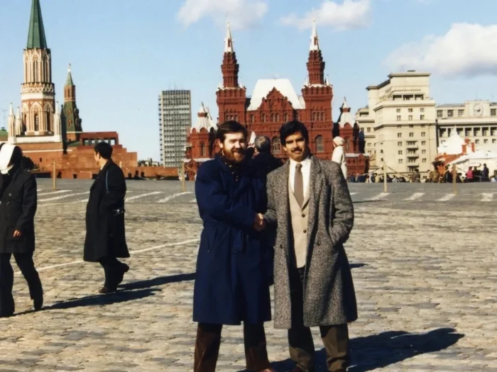 16. Создатель тетриса Алексей Пажитнов (слева) вместе с Хенком Б. Роджерсом, лицензировавшим тетрис для Nintendo, 1989 год.