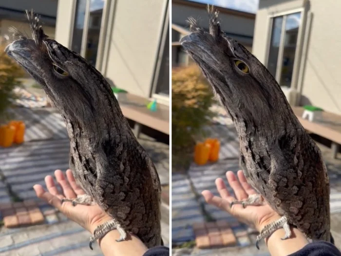 Он использует оперение, напоминающее ветви деревьев, для маскировки.
