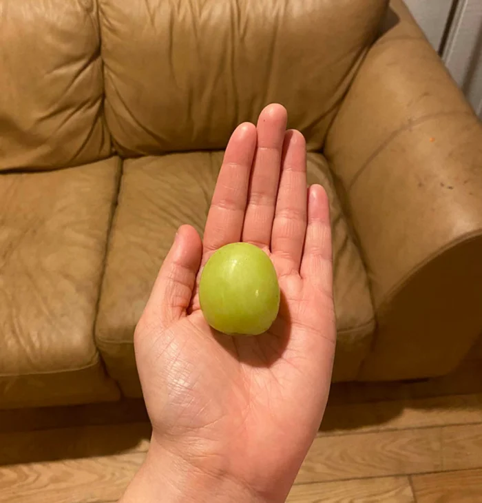 Это не зеленое яблоко, а виноградина. Готовы попробовать выжать из нее сок?