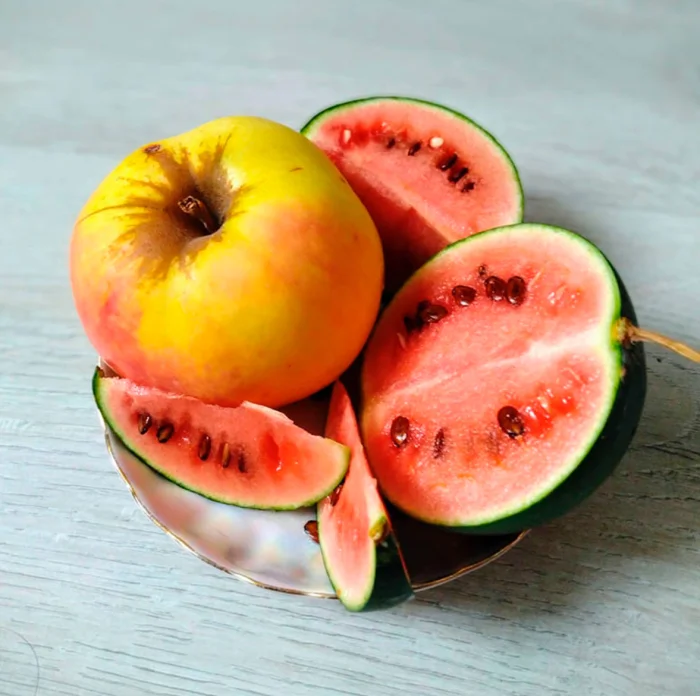То ли яблоки огромные, то ли арбуз не удался. Есть версии?