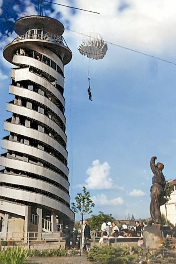 Хотя это не совсем архитектурное сооружение, данная постройка все же интересна. Летом 1929 года в парке была возведена 35-метровая башня спирального спуска, по которой посетители могли скатываться на ковриках. В 1930-е годы она была переоборудована в тренажер для парашютистов, и любой желающий мог попробовать спуститься с вышки.