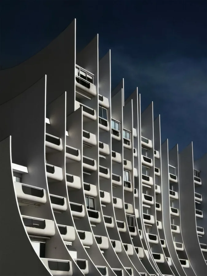 Здание в форме волны "L'immeuble En Vague" в Бретани, Франция, 1970-е годы.