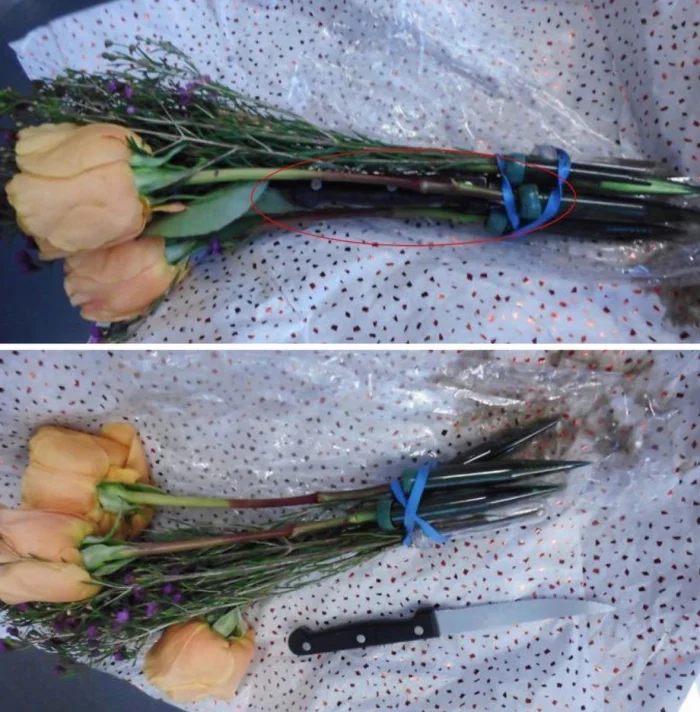 Нож, скрытый в букете цветов