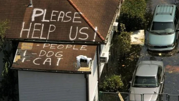 19. Надпись на крыше "Пожалуйста, помогите нам" во время урагана «Катрина», 2005 год