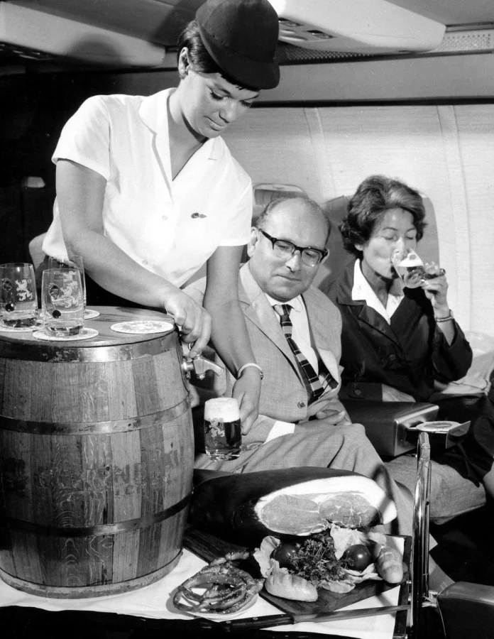 27. Разливное пиво на борту немецкой авиакомпании Lufthansa, 1963 год