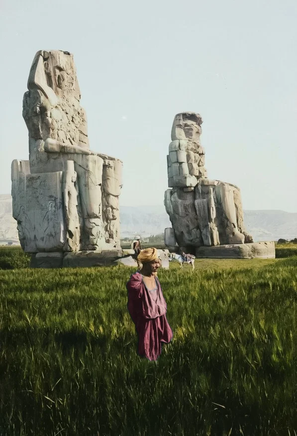 Эти статуи первоначально украшали вход в грандиозный храмовый комплекс Аменхотепа III, расположенный на западном берегу Нила, недалеко от Фив.