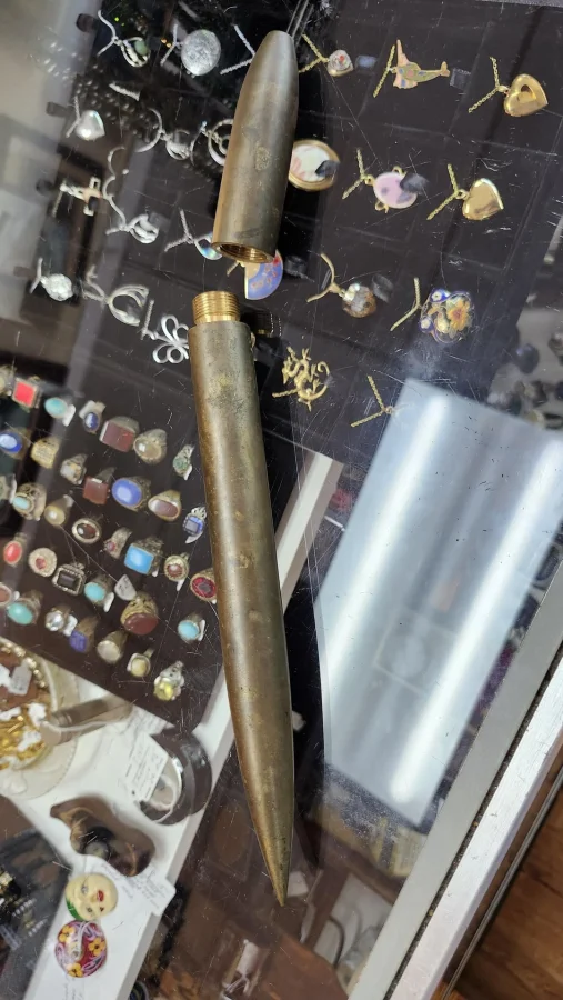 6. Латунный предмет с свинцовым противовесом, длиной около двадцати сантиметров, без штампов и гравировок, при нажатии опускается, как ракушка