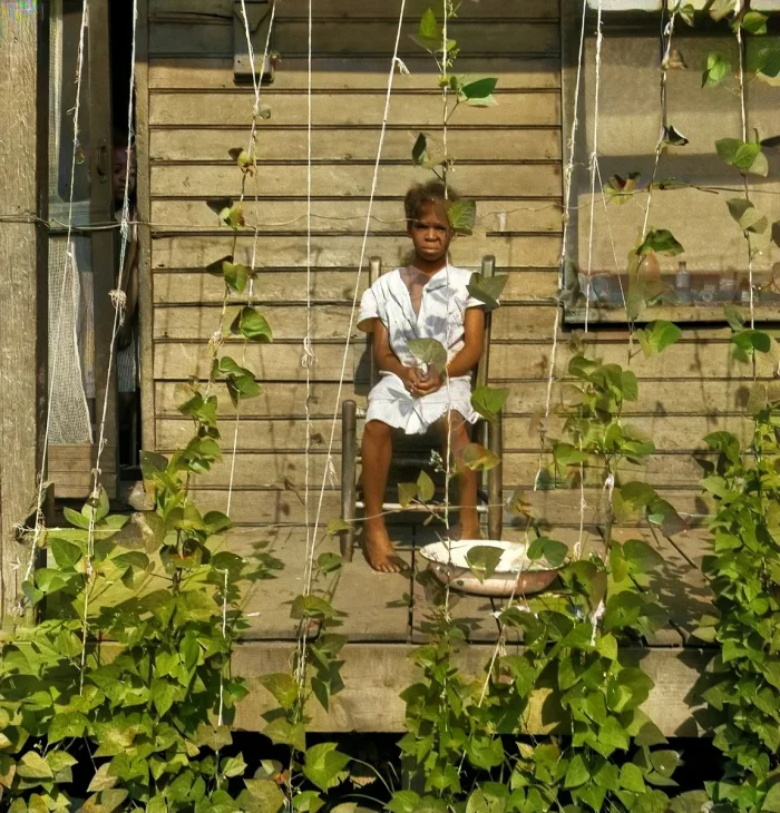 Лозы масляной фасоли на крыльце. Негритянское сообщество в Мемфисе, Теннесси, 1938 год.