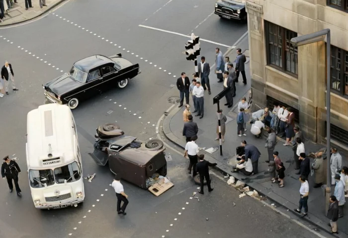 Авария на пересечение улиц Кларкенвелл-роуд и Фаррингдон-роуд. Лондон 11 июня 1962 года.
