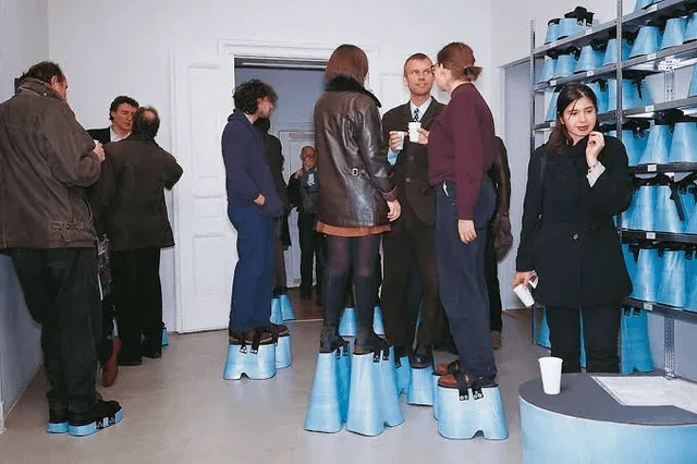 Немецкий художник Ханс Хеммерт организовал необычную вечеринку - Same-Height Party (Вечеринка одинакового роста). Независимо от реального роста, в зале присутствовали только "люди-столбики" одного размера, высмеивающие социальные нормы и стереотипы о "правильных" пропорциях тела.