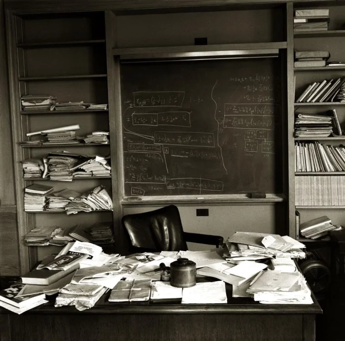 18 апреля 1955 года мир потерял Альберта Эйнштейна. На следующий день фотограф запечатлел его рабочий стол в Принстоне — таким, каким он остался после великого физика.