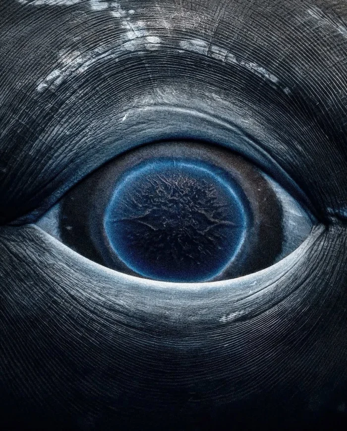 Впервые в истории фотографы смогли запечатлеть глаз кита в крупном плане, показав его яркие синие оттенки и удивительные детали - сапфировый цвет радужки, уникальную текстуру кожи и завораживающий зрачок.