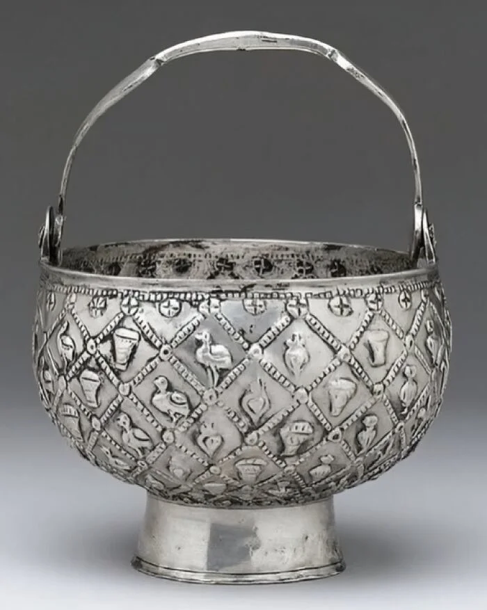19. Серебряное ведёрко из Врапа, Албания. Оно было частью клада, спрятанного в VI-VII веках аварами или восставшими против них булгарами.