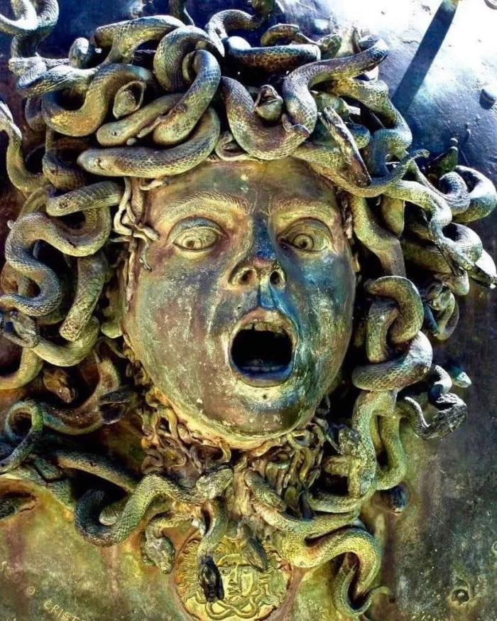 20. Бронзовая голова Медузы Горгоны, датируемая 120 годом н.э. Обнаружена на вилле Адриана в Тиволи, Италия.