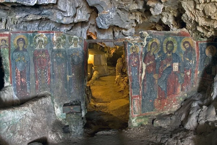 26. Пещера Святой Софии на острове Китира, Греция. Существует мнение, что здесь нашли её тело. В 1875 году жители деревни Милопотамос построили часовню в её честь, где находятся несколько икон и великолепные фрески, датируемые XIII веком