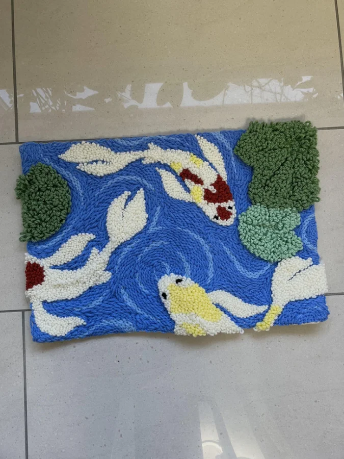 3. "Создала коврик в форме пруда с карпами"