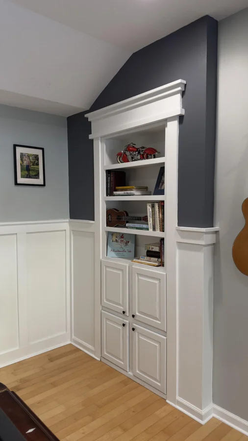 2. "Я выполнил это! Декор из реек и полки. Все отшлифовано и покрашено"