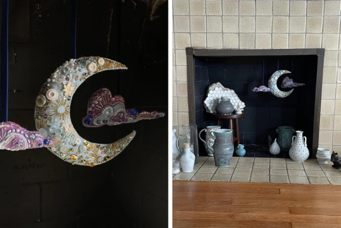 18. "Создала лунный декор для камина, используя фетр, бусины и пуговицы"