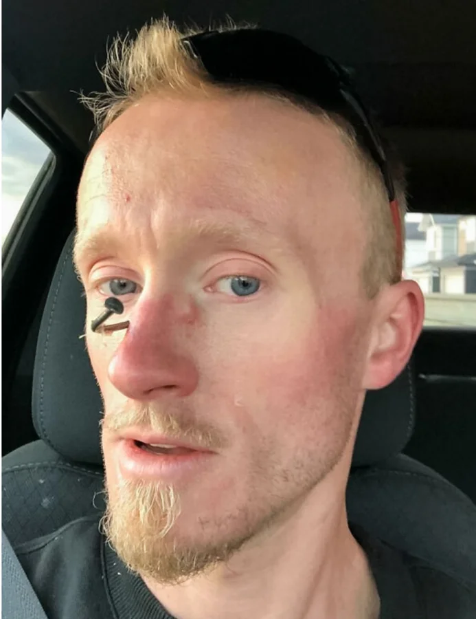 Благодаря флуоресцентным глазным каплям специалисты видят царапины на роговице. С этим парнем произошел несчастный случай на заводе